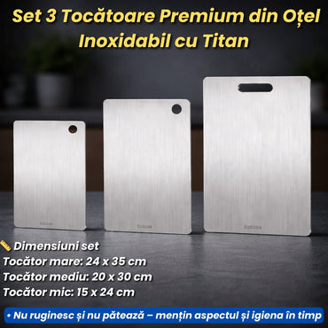 Set 3 Tocătoare Premium din Oțel Inoxidabil cu Titan – Rezistente și Igienice