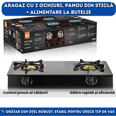 Aragaz cu 2 Ochiuri din Sticlă Termorezistentă – Alimentare la Butelie, Model Premium